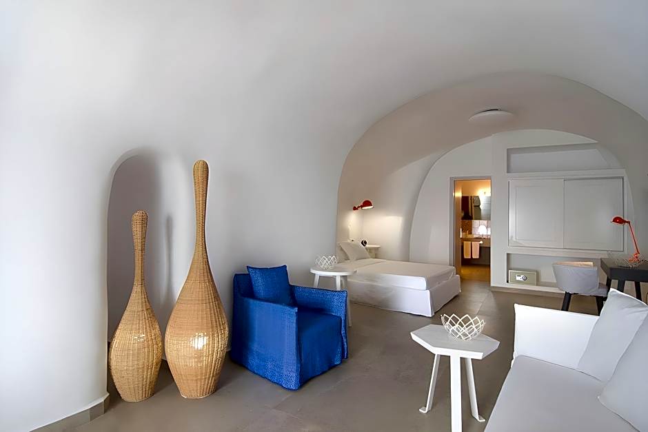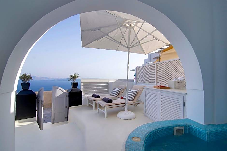 Featuring Caldera View, a private terrace with outdoor infinity pool, sun beds and dining area. It has a spacious bedroom, separate living area with spectacular sea views, internal staircase, and bathroom with glass cabin shower with hydromassage jets. Guests in this soundproofing and air-conditioned suite are benefited with a private entrance.